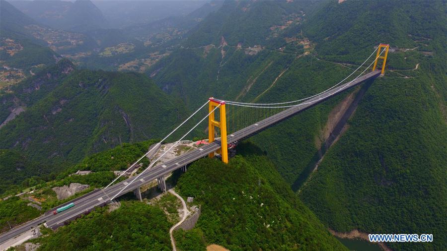 Le pont Siduhe près de Yesanguan (province du Hubei) approche des 500 mètres de hauteur. Avec 496 mètres, il a été le pont le plus haut du monde de 2009 à 2016. Il transporte l’autoroute Shanghai-Chongqing à travers la vallée de Siduhe sur une longueur de 1 100 mètres. Si l’on inclut les ancrages des câbles de suspension, il mesure 1 222 mètres de long. La portée entre les pylônes est de 900 mètres. Pendant la construction du pont suspendu, le premier câble de suspension a été tiré au-dessus de la gorge pour la première fois à l’aide d’une fusée militaire plutôt que d’un câble de suspension auxiliaire. La même technique a ensuite été utilisée pour le pont Puli.